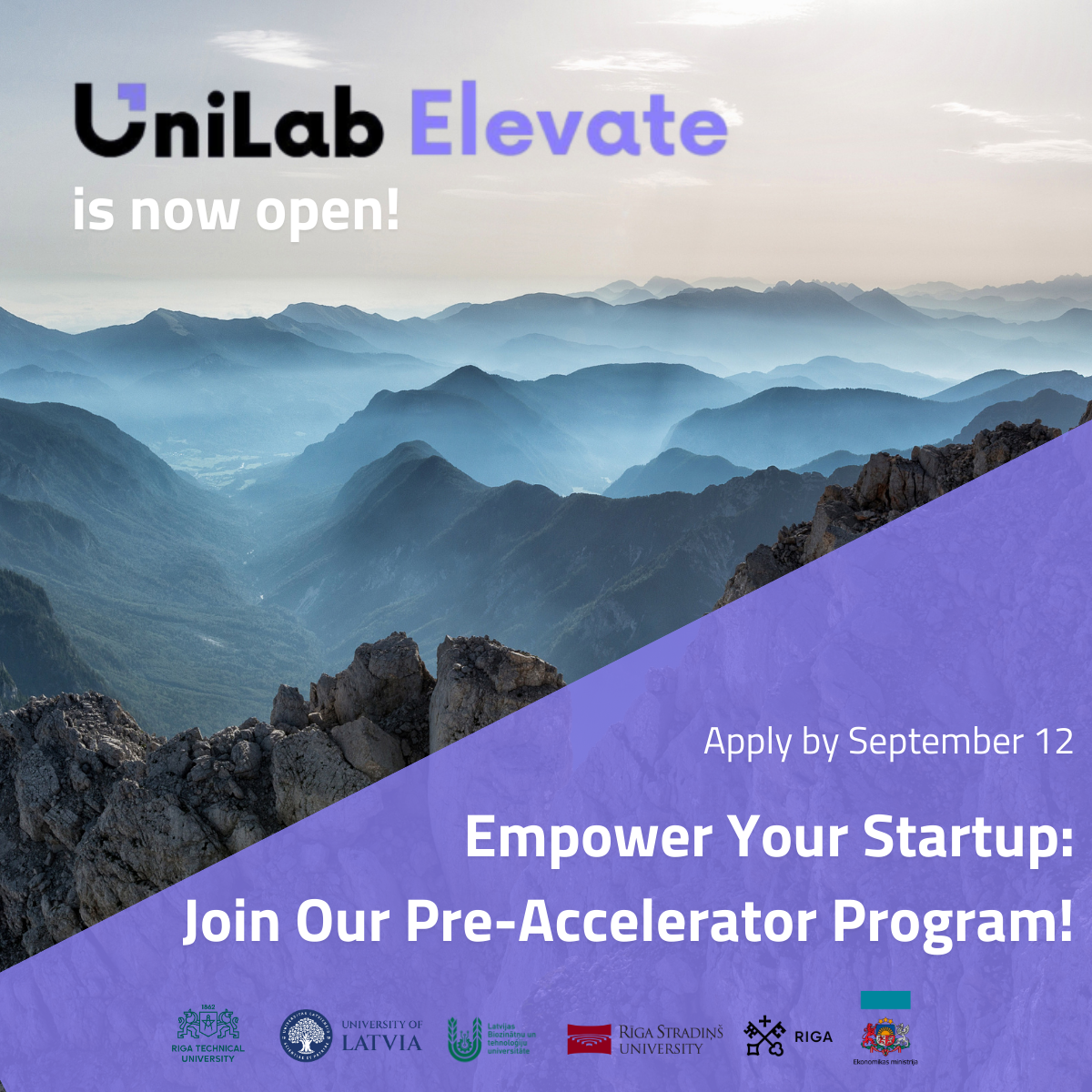 Until September 12, students, researchers, employees or recent graduates of Latvian universities of science (RTU, RSU, LU and LBTU) have the opportunity to apply for UniLab Elevate - a pre-accelerator for technology driven business ideas. The aim of the pre-accelerator is to support innovators from the university ecosystem who want to turn their business ideas and teams into companies.