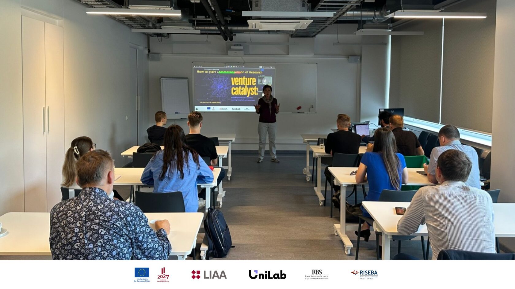Venture Catalysts is a national training initiative that supports the development of science-based startups in Latvia. A joint effort by LIAA, UniLab, RTU Riga Business School, and RISEBA, and funded from the ERDF project "Development of Innovative Entrepreneurship of SMEs" (1.2.3.1/1/23/I/001), the program is designed to accelerate the commercialization of deep tech innovation and foster a more dynamic and globally competitive startup ecosystem.